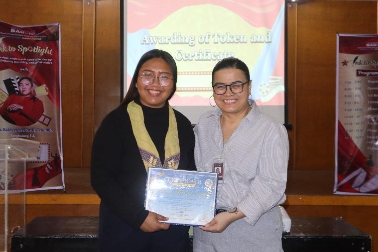 The morning session, entitled Ink to Spotlight, featured theater artist, director, and educator Katherine Nobleza-Estavillo who delivered a seminar on dramatic writing and performance. She discussed the fundamentals of transforming written scripts into stage productions and highlighted how theater allows language and literature to be experienced through dialogue, movement, and collaboration. Ms. Nobleza-Estavillo also shared insights from her experience in theater, including her work with various productions and her role as Artistic Director and trainer of Tanghalang SLU.
